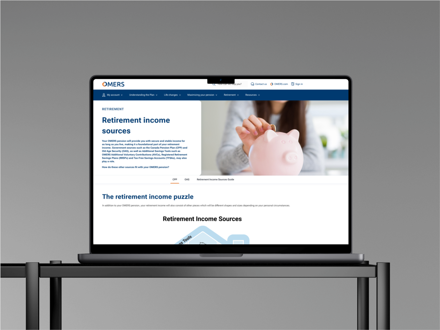 Following the research and design iterations, OMERS launched a series of content, including a new retirement income sources page.
